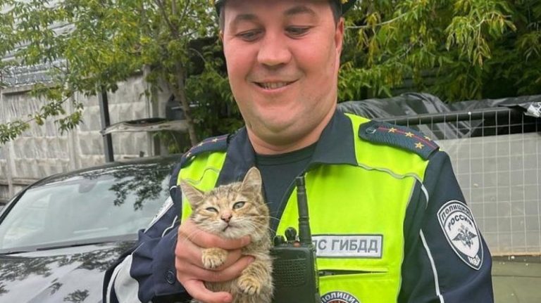 Стала ли остановка автомобиля на оживленной магистрали причиной ДТП, не сообщается. Так или иначе, вероятно, именно это стечение обстоятельств спасло котенку жизнь.
