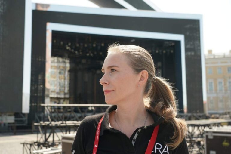 Разумеется, тщательно рассчитывается и надежность сцены в целом. Мы учитываем капризную петербургскую погоду — возможность дождя, сильных порывов ветра. Инженеры корректируют всё — от сопряжения экранов с декорацией до расположения проводов, кабелей, стяжек.